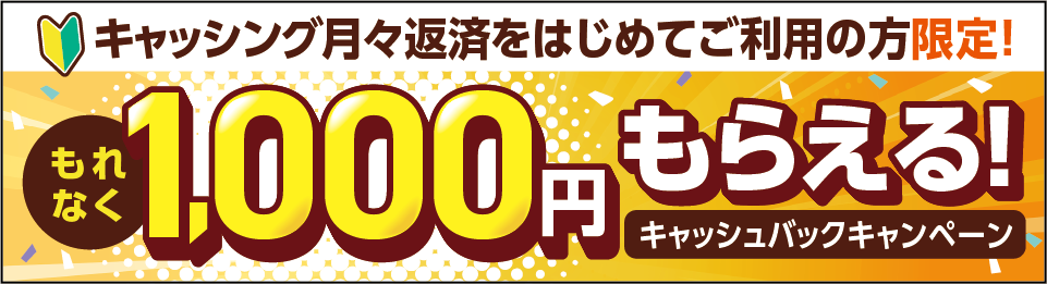 キャッシング月々返済をはじめてご利用でキャッシュバックキャンペーン