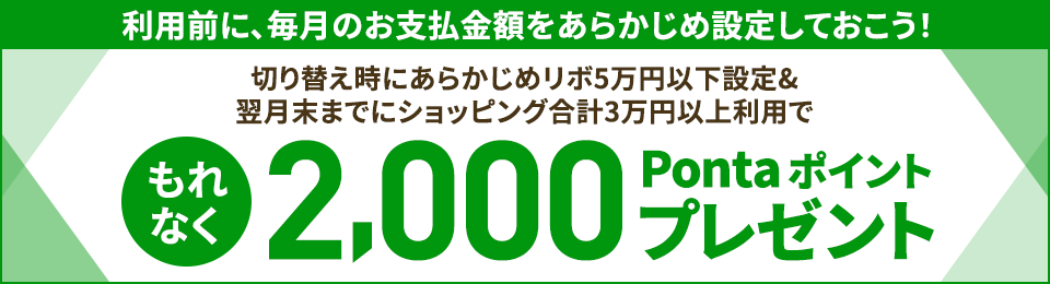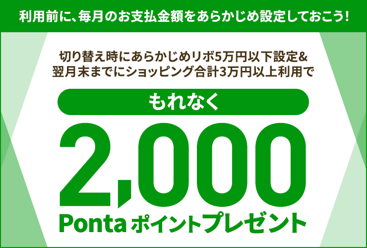 - 特典判定時点で、「あらかじめリボ」設定を解除されている場合や5万円をこえる金額に設定されている場合は対象となりません。