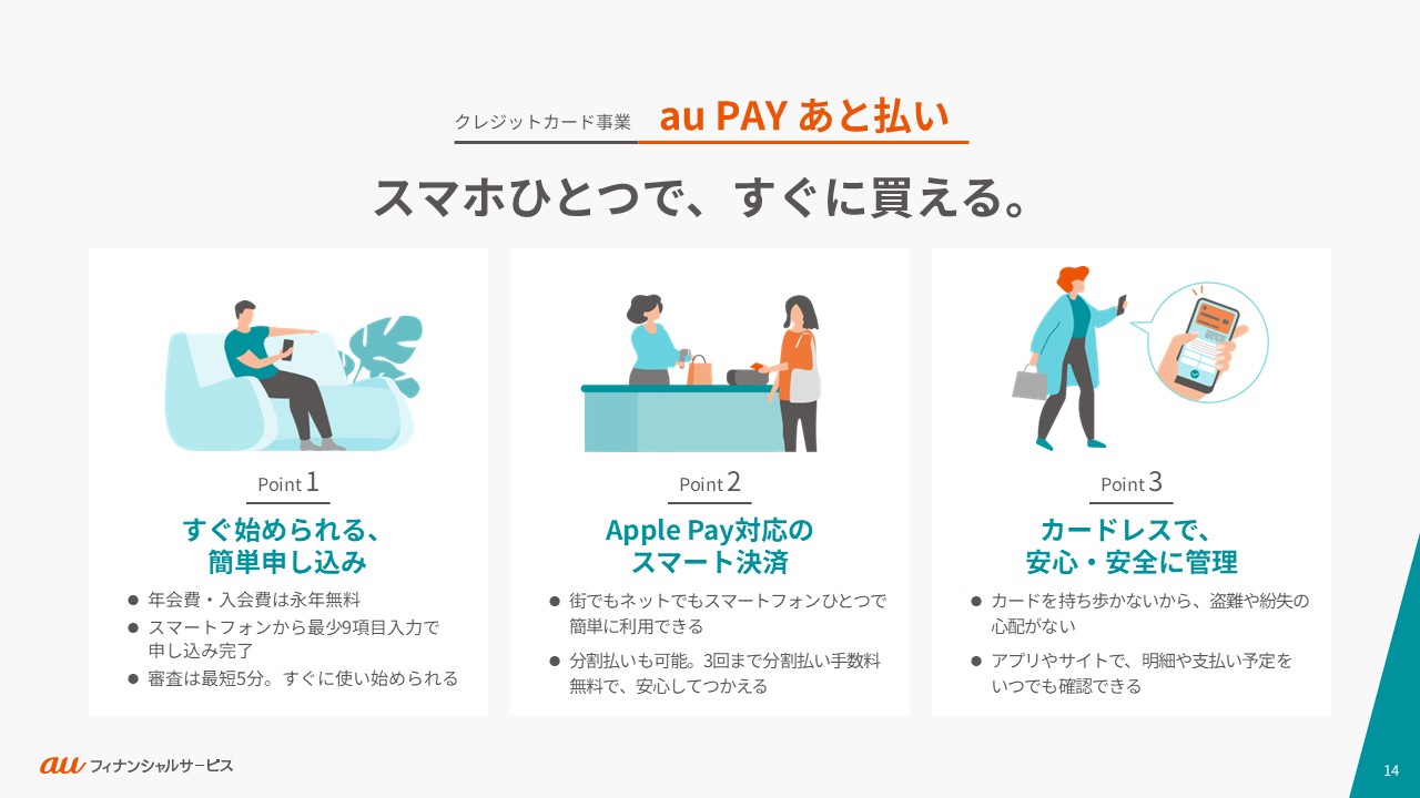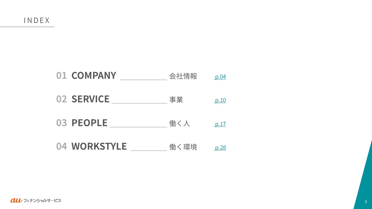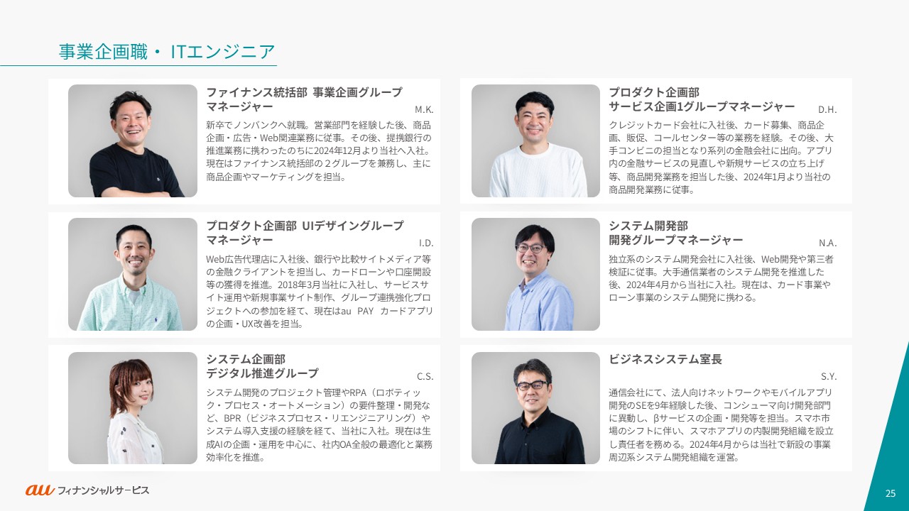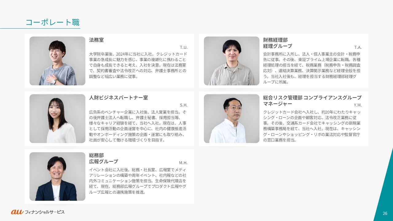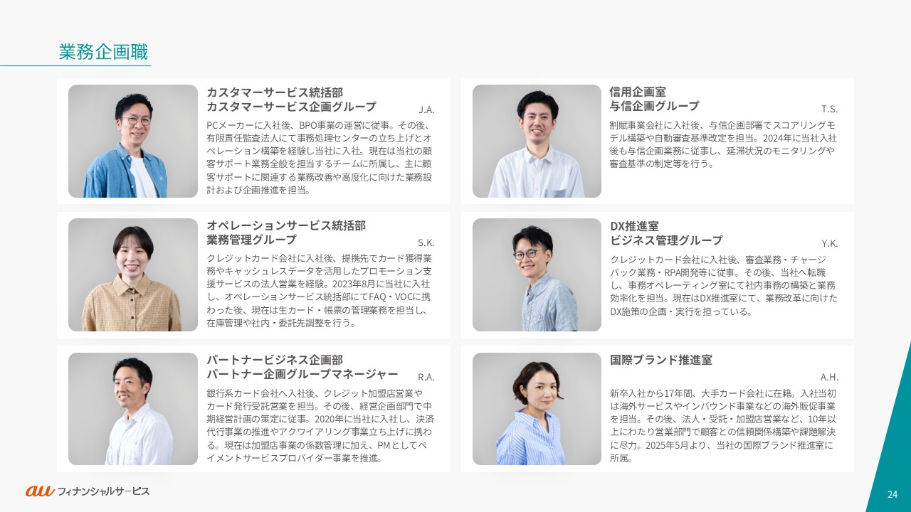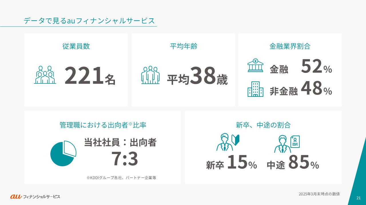 auフィナンシャルサービスの事業や働く人々・カルチャーをご紹介します。ご利用の端末やブラウザによっては、表示が崩れたり、正しく表示されない場合がありますので、PDFでもご覧ください。