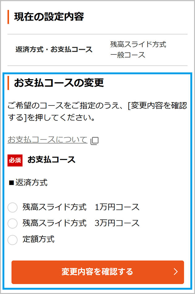 毎月のお支払金額は、「残高スライド方式」、「定額方式」から自分に合ったコースを選べます。