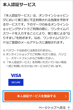 オンラインショッピングの際、ご登録されているメールアドレスに届く「ワンタイムパスワード」を入力することで本人認証を行い、第三者による「なりすまし」などの不正利用を未然に防ぎます。