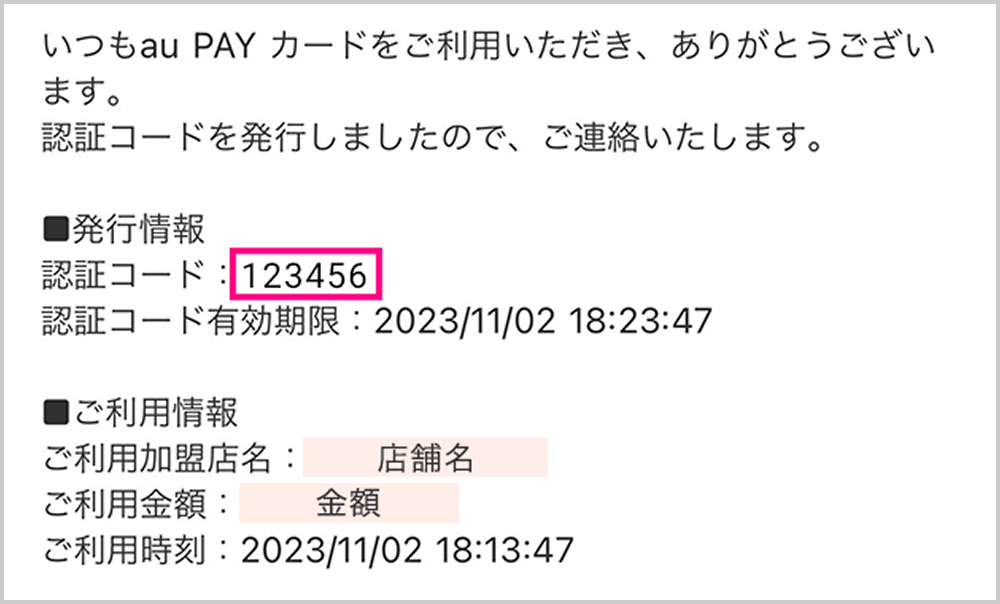 ご登録されているメールアドレスに通知される1回限り有効なパスワードです。