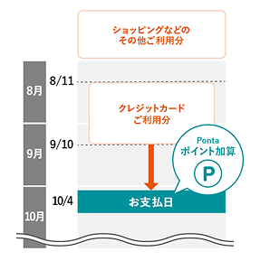 毎月15日までのカードご利用分が、翌月10日※お支払いとなります。