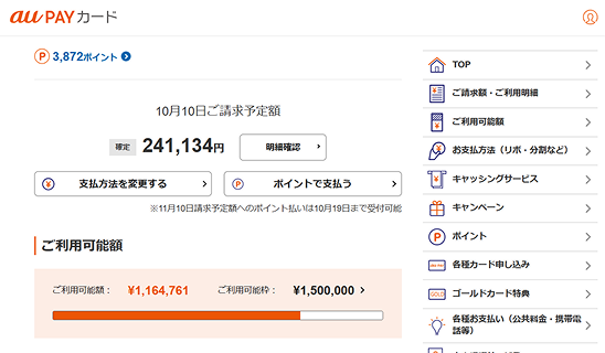 au PAY カードの締め日と支払日の確認方法をご案内します。